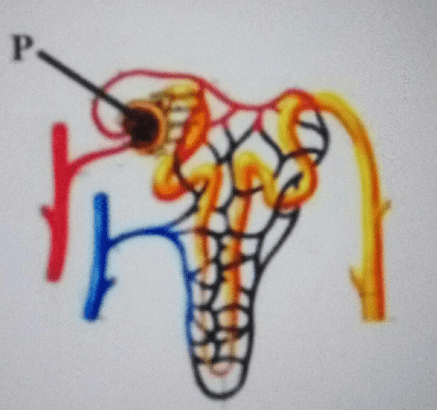 Perhatikan gambar berikut! Bagian ginjal yang ditunjuk oleh huruf P berfungsi untuk proses ....