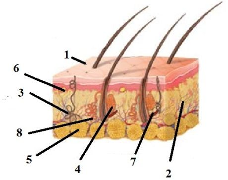 Bagian kulit yang berperan dalam sistem ekskresi ditunjukkan oleh nomor ….