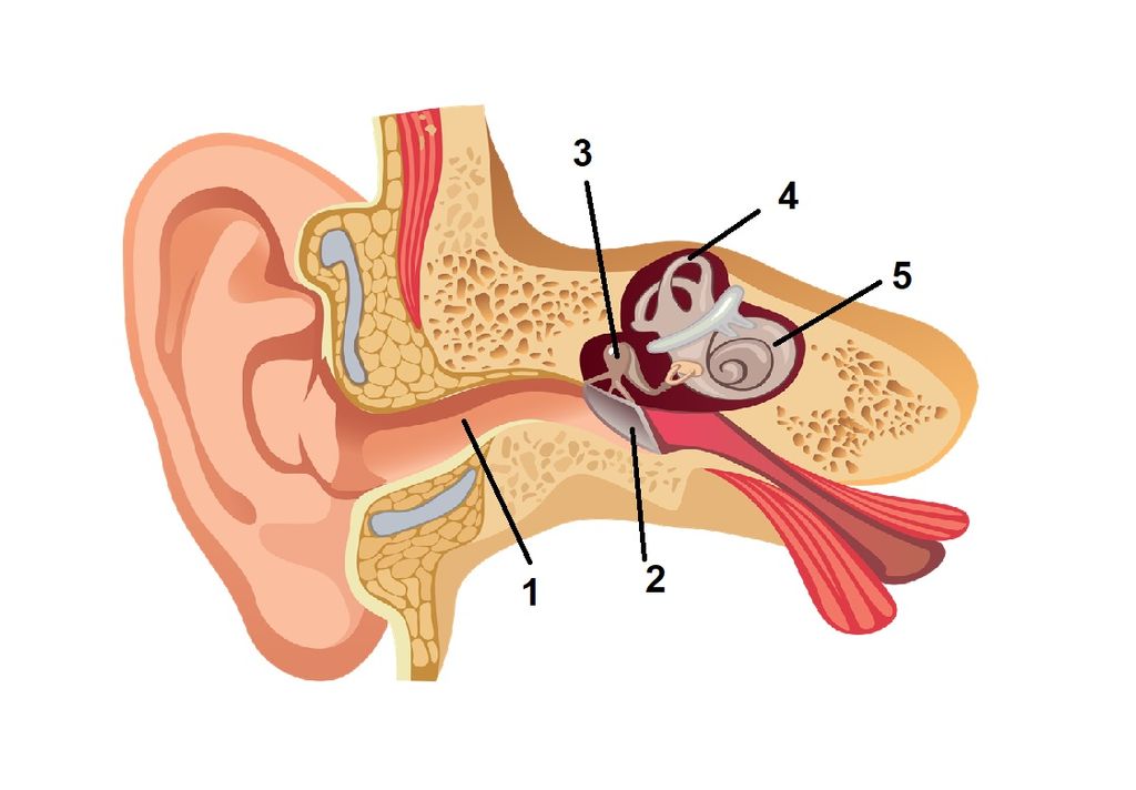 Bagian yang mengalami kerusakan pada tuli sensorineural ditunjukkan oleh nomor ….