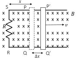 Batang konduktor l yang berada dalam medan magnet seragam B ditarik ke kanan dengan kecepatan v. Berdasarkan gambar di atas, perubahan fluks magnetik dapat dinyatakan dalam persamaan ....