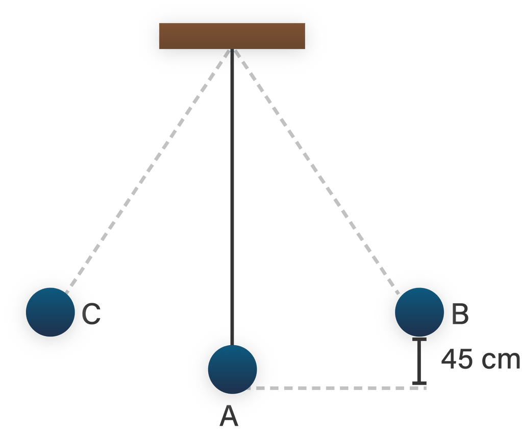 Benda bermassa 2 kg mula-mula di titik A, kemudian disimpangkan ke titik B dan dilepas sehingga berayun. Jika percepatan gravitasi Bumi 10 m/s2, maka kecepatan benda pada saat di titik A sesaat setelah berayun/bergetar adalah ....