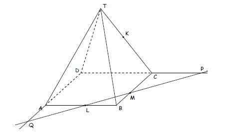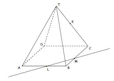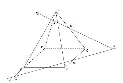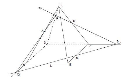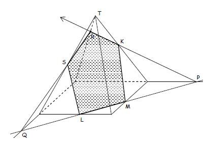 Bentuk irisan bidang yang melalui titik K, L dan M pada limas segiempat di atas adalah ….
