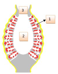 Berdasarkan gambar di atas, bagian tubuh Porifera yang ditunjuk nomor 1, 2, 3 secara berurutan adalah ....