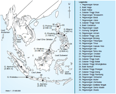 Berdasarkan gambar sebaran bentang alam di Asia Tenggara di atas, Pegunungan Gajah atau Pegunungan Elephant yang ditunjukkan oleh nomor 10 berada di wilayah negara….