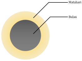 Bulan sedang berada tepat di tengah-tengah Bumi dan Matahari, sehingga dari Bumi tampak seperti gambar di atas. Terlihat bahwa Bulan tidak menutupi seluruh sinar Matahari yang mengarah ke Bumi. Fenomena tersebut disebut sebagai ....