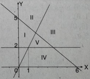 Daerah penyelesaian sistem pertidaksamaan , , ditunjukkan oleh daerah ....