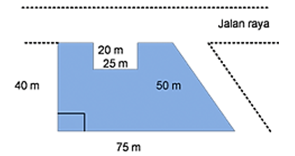 Daerah yang diarsir adalah sketsa tanah yang ditanami rumput. Luas hamparan rumput tersebut adalah ....