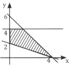 Daerah yang diarsir pada gambar tersebut merupakan himpunan penyelesaian suatu sistem pertidaksamaan. Pada daerah tersebut, interval nilai dari fungsi obyektif adalah ....