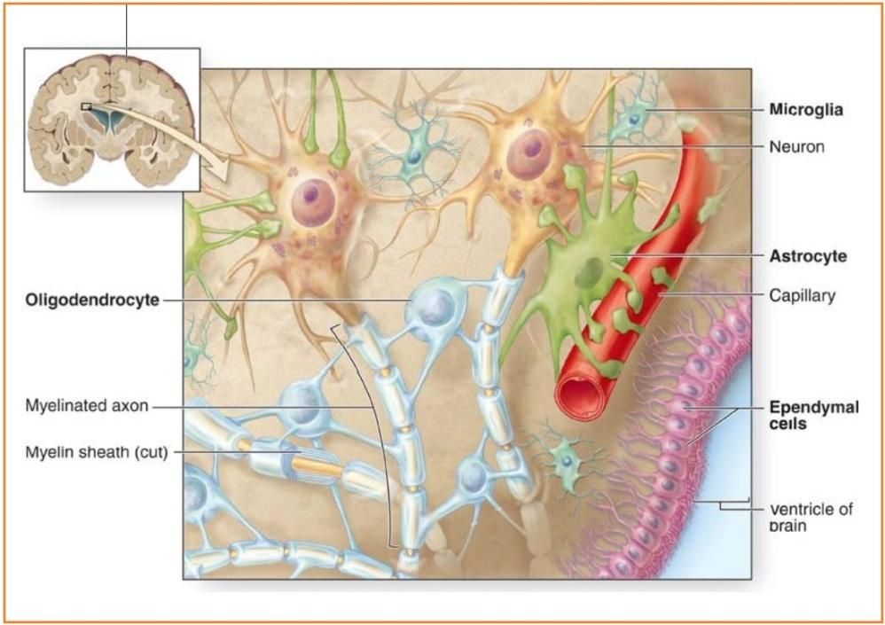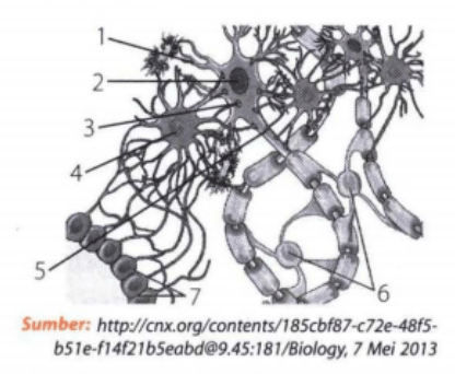 Dendrit, sel glial, dan akson, ditunjukkan oleh nomor ....