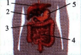 Alat pencernaan pada gambar di samping yang dapat menghasilkan enzim pepsin dan renin nomor ....