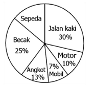 Diagram di atas menunjukkan cara 120 siswa berangkat ke sekolah. Banyak siswa yang berangkat ke sekolah dengan menggunakan jalan kaki adalah….