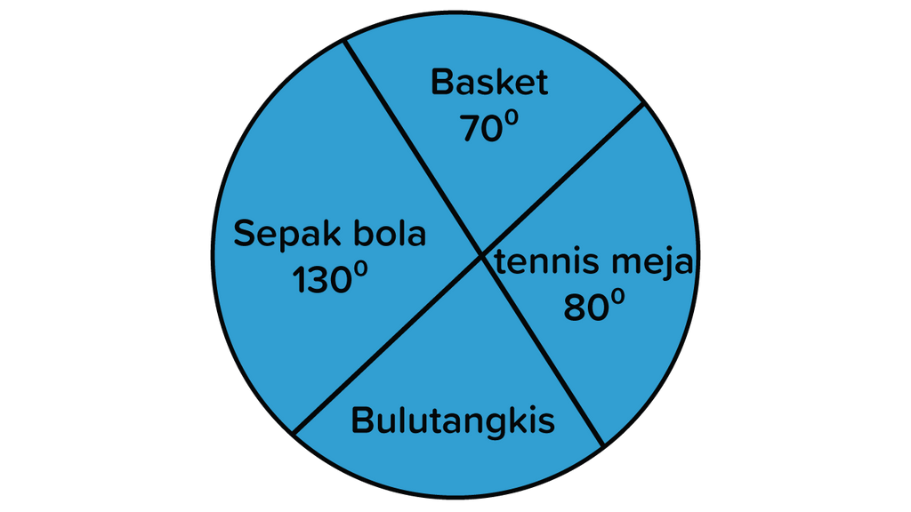 Diagram lingkaran berikut menunjukkan data tentang kegemaran siswa berolahraga di sekolah. Banyak siswa yang gemar sepakbola 65 anak. Banyaknya siswa yang gemar bulu tangkis ....