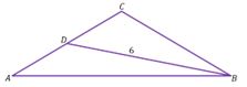 Diketahui ABC adalah segitiga sama kaki dengan AC = BC. Titik D merupakan titik tengah sisi AC sehingga panjang BD adalah 6 cm. Jika besar sudut BCA adalah , maka panjang AB adalah ... cm.
