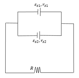 Diketahui bahwa dan . Nilai hambatan dalam masing-masing adalah dan . Jika nilai , kuat arus yang mengalir dalam rangkaian adalah ….