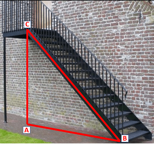 Diketahui jarak titik A ke B 3 meter dan jarak dari titik A ke C 2 meter. Kemiringan tangga tersebut adalah ....