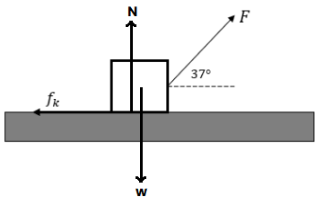 Diketahui massa kotak 2 kg dan permukaan lantai kasar dengan . Bila kotak ditarik dengan gaya F = 20 N, percepatan kotak sebesar ….
