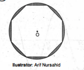 Diketahui segi delapan beraturan berada di dalam lingkaran yang berpusat di dan jari-jari . Luas daerah arsiran adalah ....