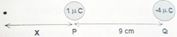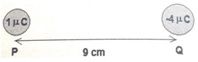 Dua muatan P dan Q masing-masing 1 dan -4 terpisah sejauh 9 cm. Letak titik yang kuat medan listrik nol adalah ...
