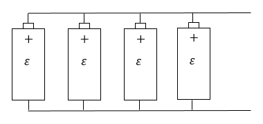 Empat buah baterai identik disusun seperti gambar di atas. Ggl total susunan baterai di atas adalah ….
