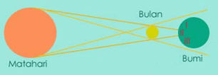 Berdasarkan gambar di atas, daerah yang mengalami gerhana matahari sebagian adalah ....