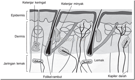 Melindungi jaringan di bawahnya dan menghasilkan keringat.