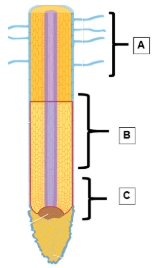Berdasarkan gambar tersebut, bagian yang ditunjukan oleh huruf A, B dan C secara berurutan adalah ....