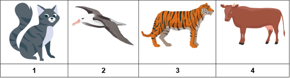 Berdasarkan gambar tersebut, hewan yang berada dalam satu famili yang sama ditunjukan oleh nomor….