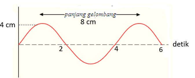 Berdasarkan grafik gelombang tersebut, panjang gelombang dan periodenya berturut-turut adalah ....