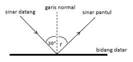 Berdasarkan Hukum Snellius, maka besar sudut pantul yang dihasilkan adalah ….