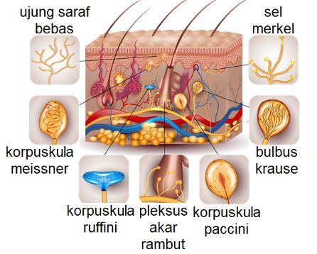 - Ujung saraf bebas sensitif terhadap rangsangan yang menyakitkan, panas dan dingin, dan sentuhan ringan.