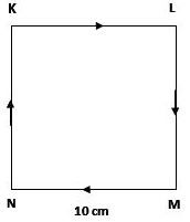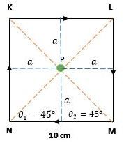 Kawat bujur sangkar KLMN dialiri arus listrik sebesar 4 A. Besar kuat medan magnet di pusat bujur sangkar tersebut apabila panjang sisi bujur sangkar ada 10 cm adalah ....