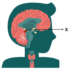 Kelenjar serta fungsi hormon yang dihasilkan oleh bagian bertanda X adalah ….