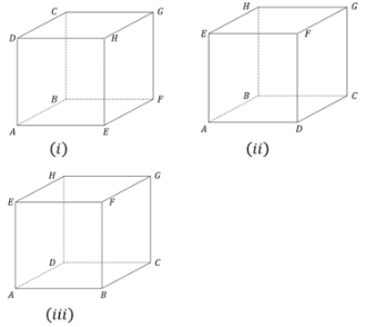 Pada bentuk (iii) dapat dilihat bahwa ABCD berada pada sisi bagian bawah dan membentuk arah putaran berlawanan arah jarum jam. Kemudian EFGH berada di bagian atas dan E, F, G dan H bersesuaian dengan A, B, C dan D maka penamaan (iii) sudah tepat.