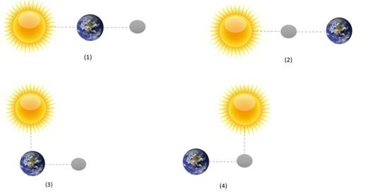 Posisi Bulan, Bumi, dan Matahari yang tepat ketika terjadi gerhana bulan ditunjukan pada gambar nomor ….