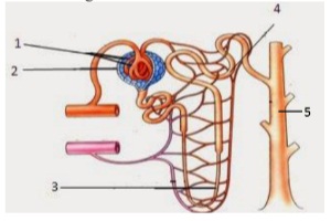 Salah satu proses pembentukan urin, terjadi proses penambahan zat-zat sisa yang tidak dibutuhkan oleh tubuh, misalnya urea. Proses itu berlangsung pada bagian bernomor ....