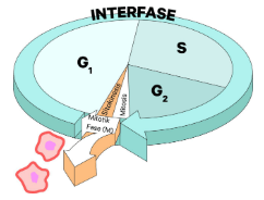 Sebelum masuk pada tahap pembelahan, sel akan melakukan persiapan pembelahan. Berdasarkan gambar siklus sel di atas, penggandaan materi genetik terjadi setelah fase ….