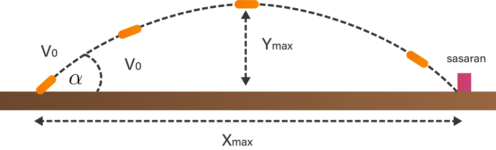 Sebuah peluru ditembakkan dengan kelajuan awal 100 m/s dan sudut elevasi 37°. Jika percepatan gravitasi bumi 10 m/s2, sin 37° = 3/5 dan cos 37° = 4/5, tentukan tinggi peluru saat t = 1 sekon!