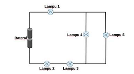 Sebuah rangkaian listrik campuran yang terdiri dari dua buah baterai dan lima buah lampu yang identik disusun seperti pada gambar di atas. Lampu yang akan dilalui dengan arus listrik yang sama besar adalah ….