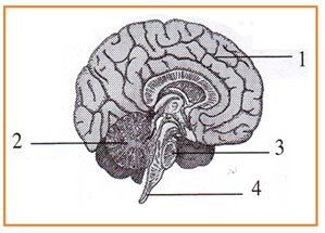 Seseorang mengalami kehilangan keseimbangan setelah dipukul kepalanya. Kemungkinan bagian otak yang mengalami gangguan akibat pukulan tersebut ditunjukan oleh nomor...