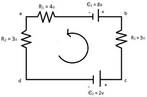 Suatu rangkaian ditunjukkan pada gambar di atas sesuai dengan aturan Hukum Kirchoff II, maka arus yang mengalir dalam rangkaian tersebut adalah ….