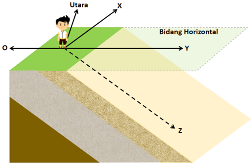 arah utara dan garis X ; subsekuen