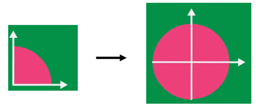 Sudut kecil di sebelah kiri dapat disusun menjadi sebuah lingkaran seperti gambar di sebelah kanan.