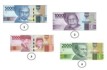 Urutan nilai mata uang pada gambar di atas dari yang terbesar ke terkecil adalah ....