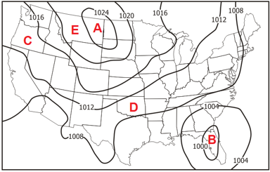 Wilayah dengan tekanan udara paling tinggi ditunjukkan oleh huruf ….