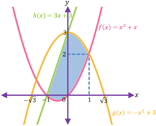 Kedua daerah ini dapat dicari luasnya menggunakan integral.