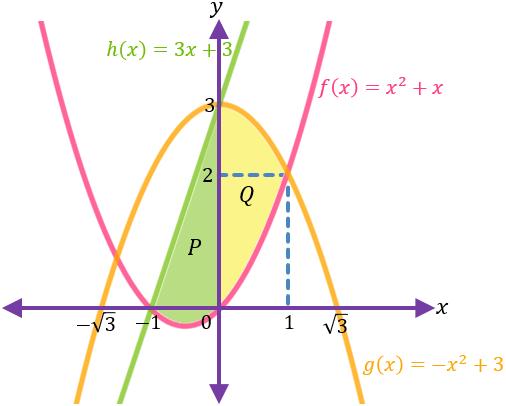 Daerah yang berwarna biru dapat dibagi menjadi dua daerah yaitu daerah P yang berwarna hijau dan daerah Q yang berwarna kuning.