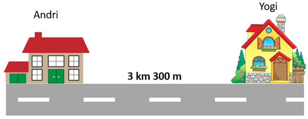 Jarak rumah Andri ke rumah Yogi dalam satuan m adalah ….