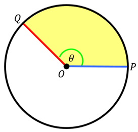 Jika θ = 150° dan OP = 6 cm, maka luas juring QOP adalah ....
