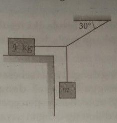 Jika gaya gesekan yang bekerja pada balok tidak boleh lebih dari , massa maksimum yang dapat diberikan supaya sistem dalam keadaan seimbang sebesar... kg. ( )