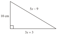Jika keliling segitiga di atas adalah , maka panjang sisi miringnya adalah ... cm.